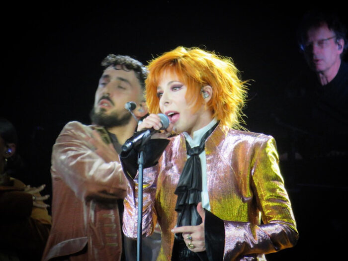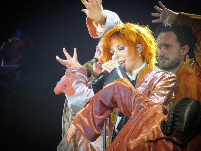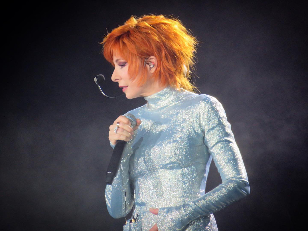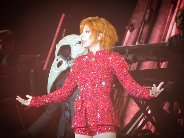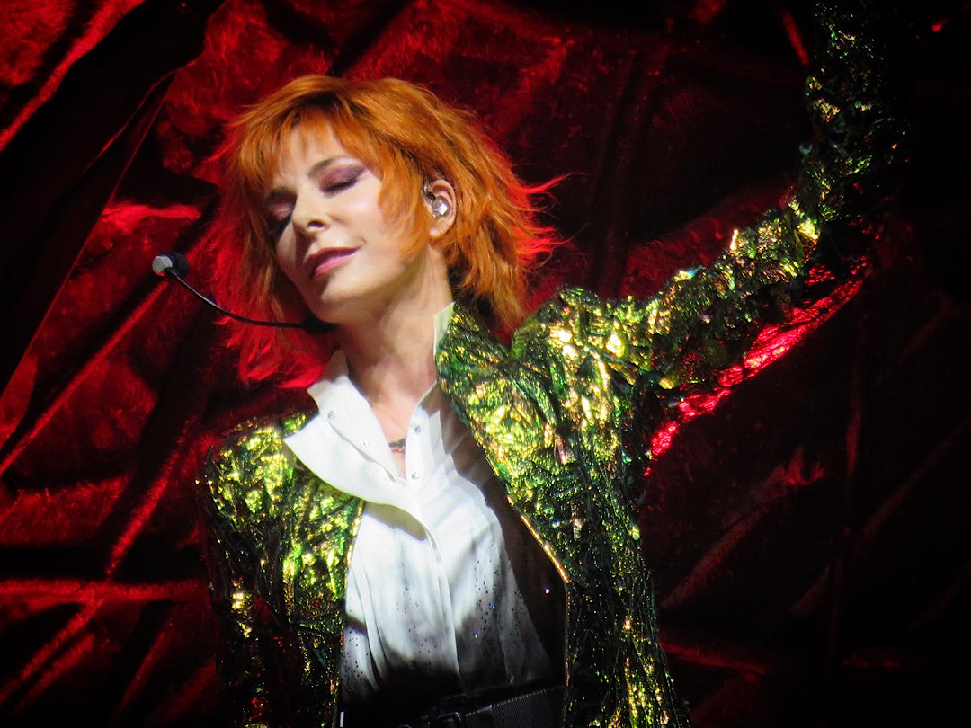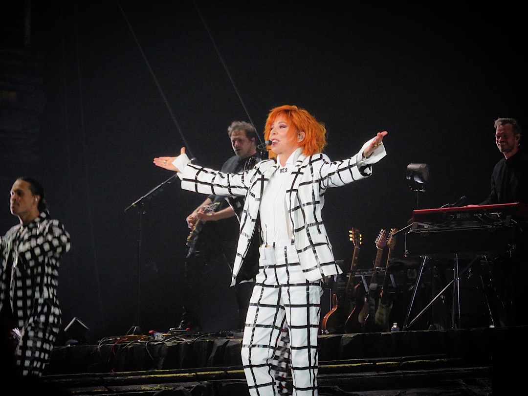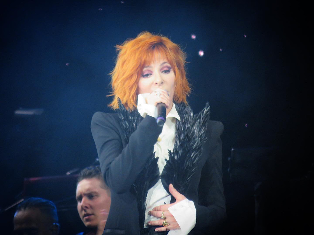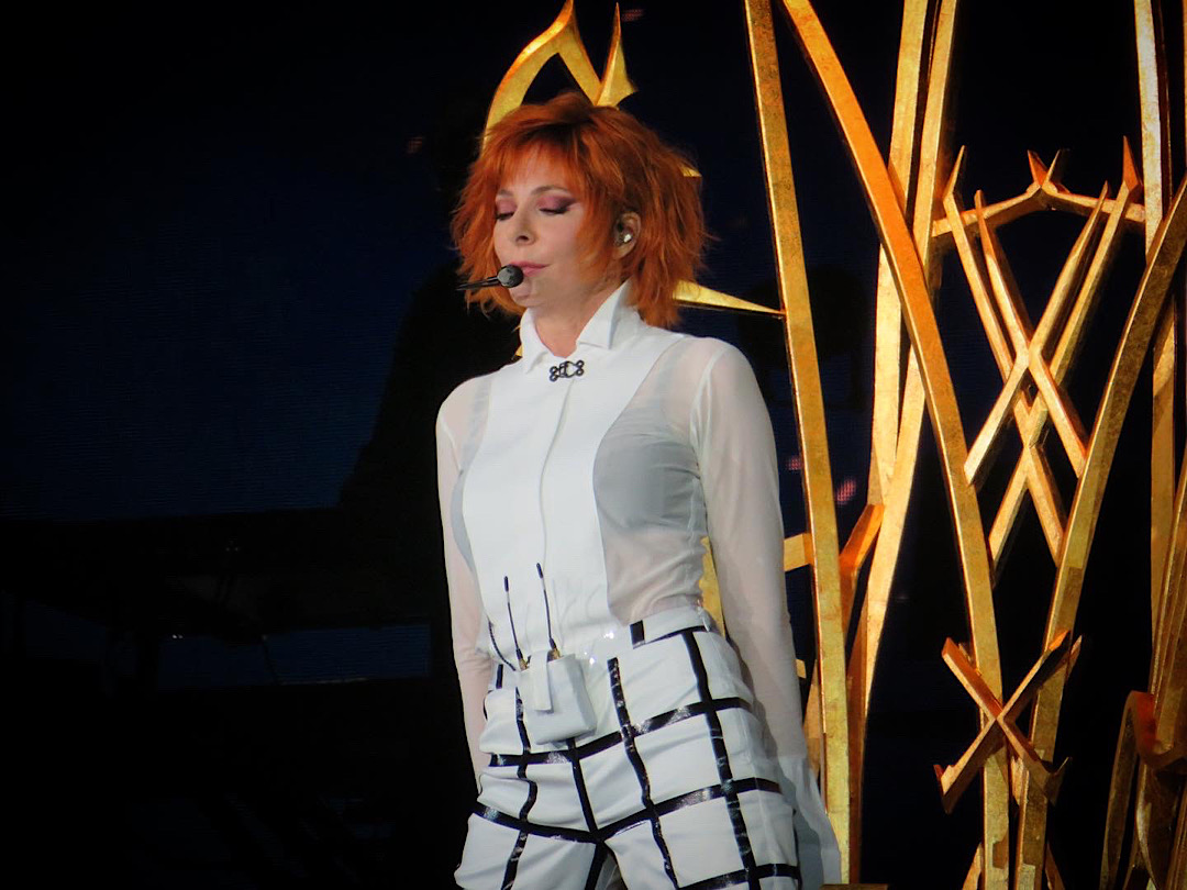 J’ai trouvé ça dommage, car à Nantes c’était un joli moment un peu suspendu, et plutôt bien intégré. Mais à part cela, et peut-être des moments un peu étranges entre les morceaux, mais que j’ai associé à des difficultés techniques liées à la pluie, c’était exactement le même concert. C’était toujours aussi agréable à redécouvrir, mais ce qui était très différent c’est l’aisance vocale de Mylène. Elle était sans doute fatiguée mais elle a eu pas mal de difficultés sur la plupart des notes très hautes, et elle a renoncé à maintes reprises à affronter cela. Autant à Nantes, il y avait eu deux ou trois couacs pardonnables, mais là c’était très faible vocalement sur l’ensemble du concert.