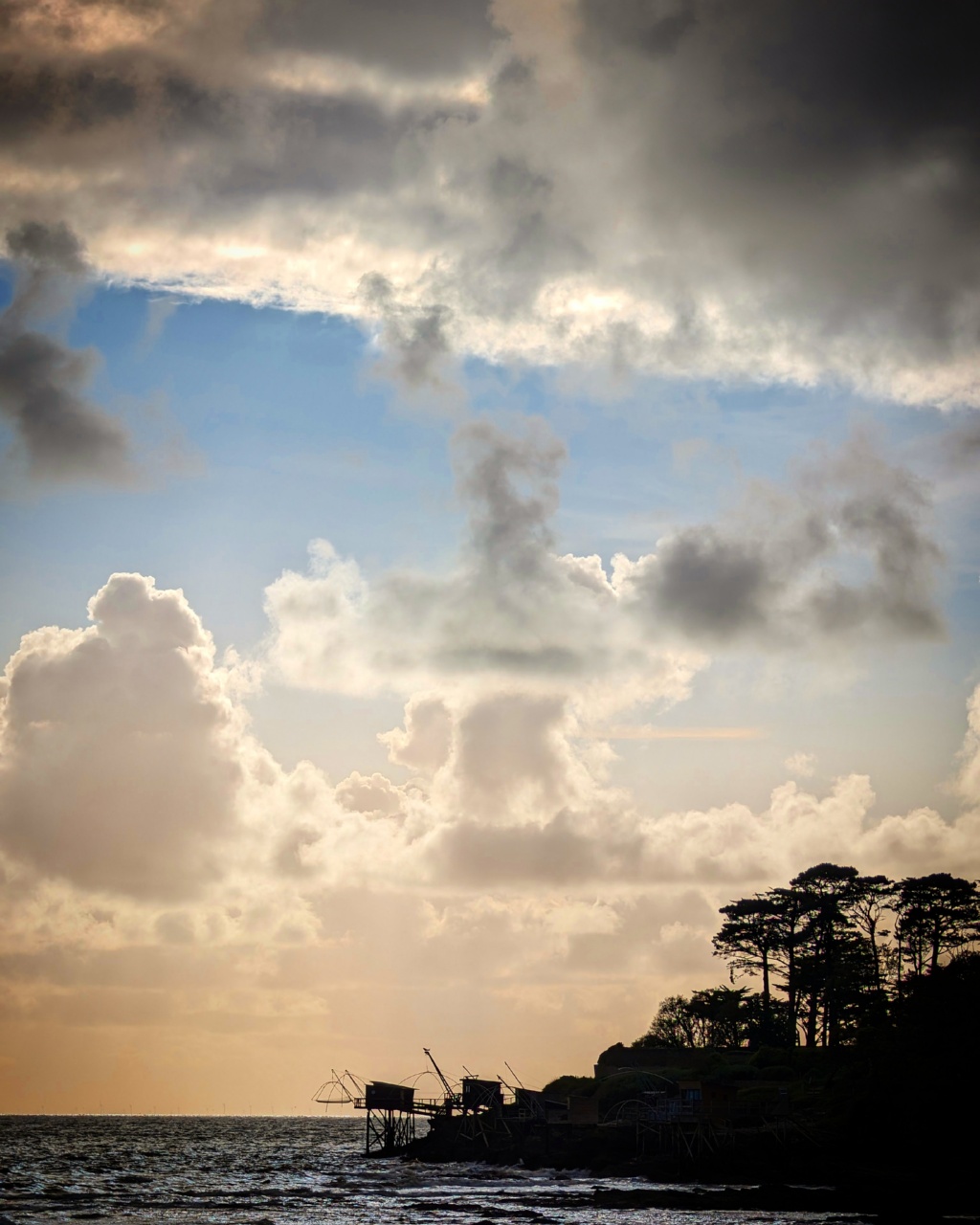 Bon mais là où ça change pas mal de la Bretagne, c’est que comme j’ai pu le voir aussi à Nantes sur la Loire, et surtout vers chez mon papa dans les Charentes maritimes, il y a des tas de carrelets !!!! Et ça, y’a pas à dire ça donne une super tronche aux paysages !!