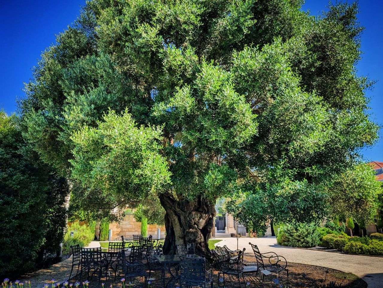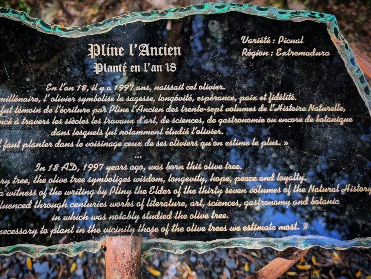 Il y avait un olivier exceptionnel au lieu du mariage, et si l’on en croit le panneau juste à côté, il s’agirait1 d’un arbre planté en 18 de notre ère (appelé Pline l’Ancien). Il a un petit côté camphrier géant de Totoro qui m’a beaucoup beaucoup plu.