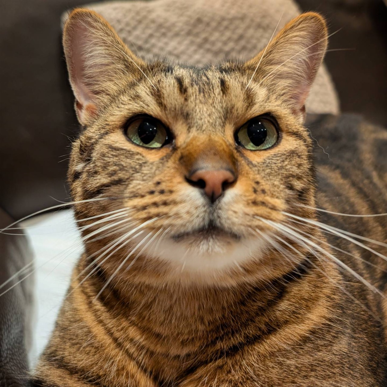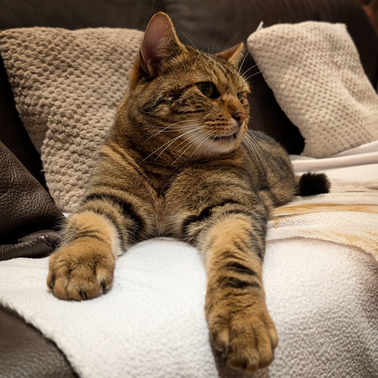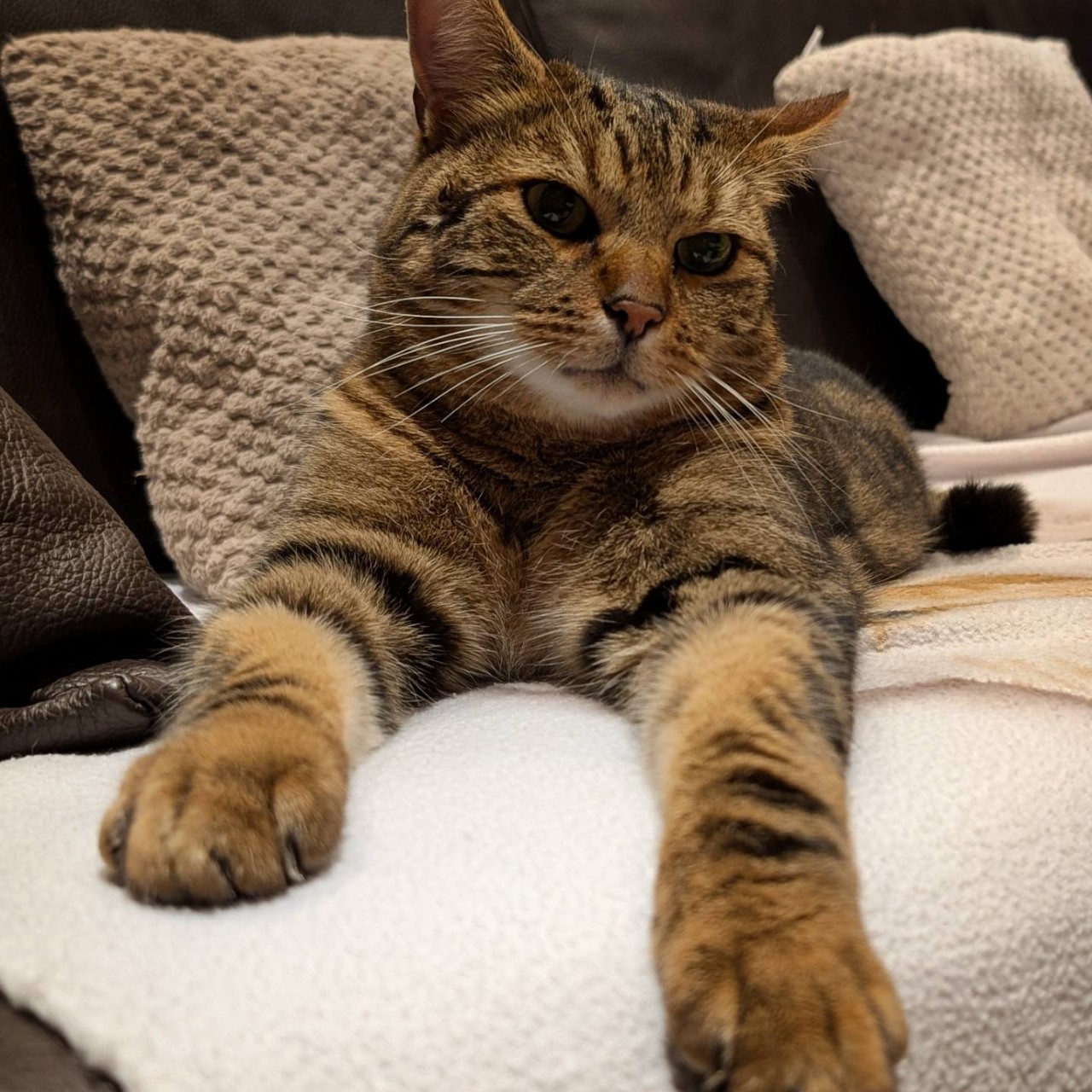 Il est toujours aussi adorable et câlin malgré son petit air revêche de prime abord. C’est un chat miauleur de compétition qui tient de véritables conversations et qui module à la perfection le ton, la hauteur et l’intensité de ses assertions sonores. A n’en pas douter, il est le maître des lieux. ^^