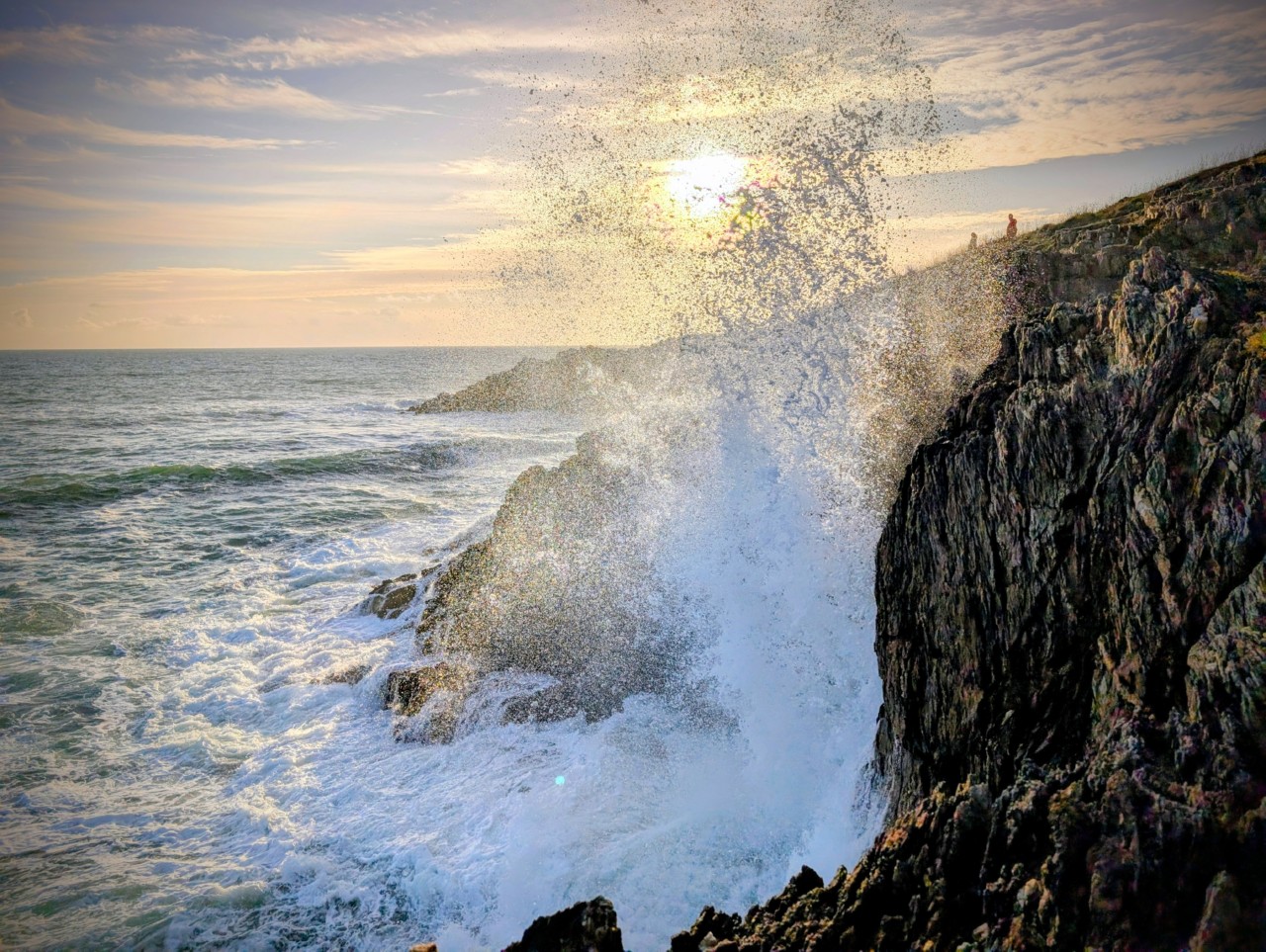 Ah là là, j’adore cette photo avec juste la bonne petite éclaboussures et la vague qui arrive juste au bon moment. ^^ Et donc quand j’ai vu les petits splatchs sploutchs et la couleur du ciel et tout, je me suis dit que j’avais du potentiel. Mais ça n’a pas duré assez longtemps, et j’avais besoin de mon appareil photo plutôt que de mon téléphone pour cela. Tant pis ! Je ne suis malgré tout pas mécontent de mon cliché.