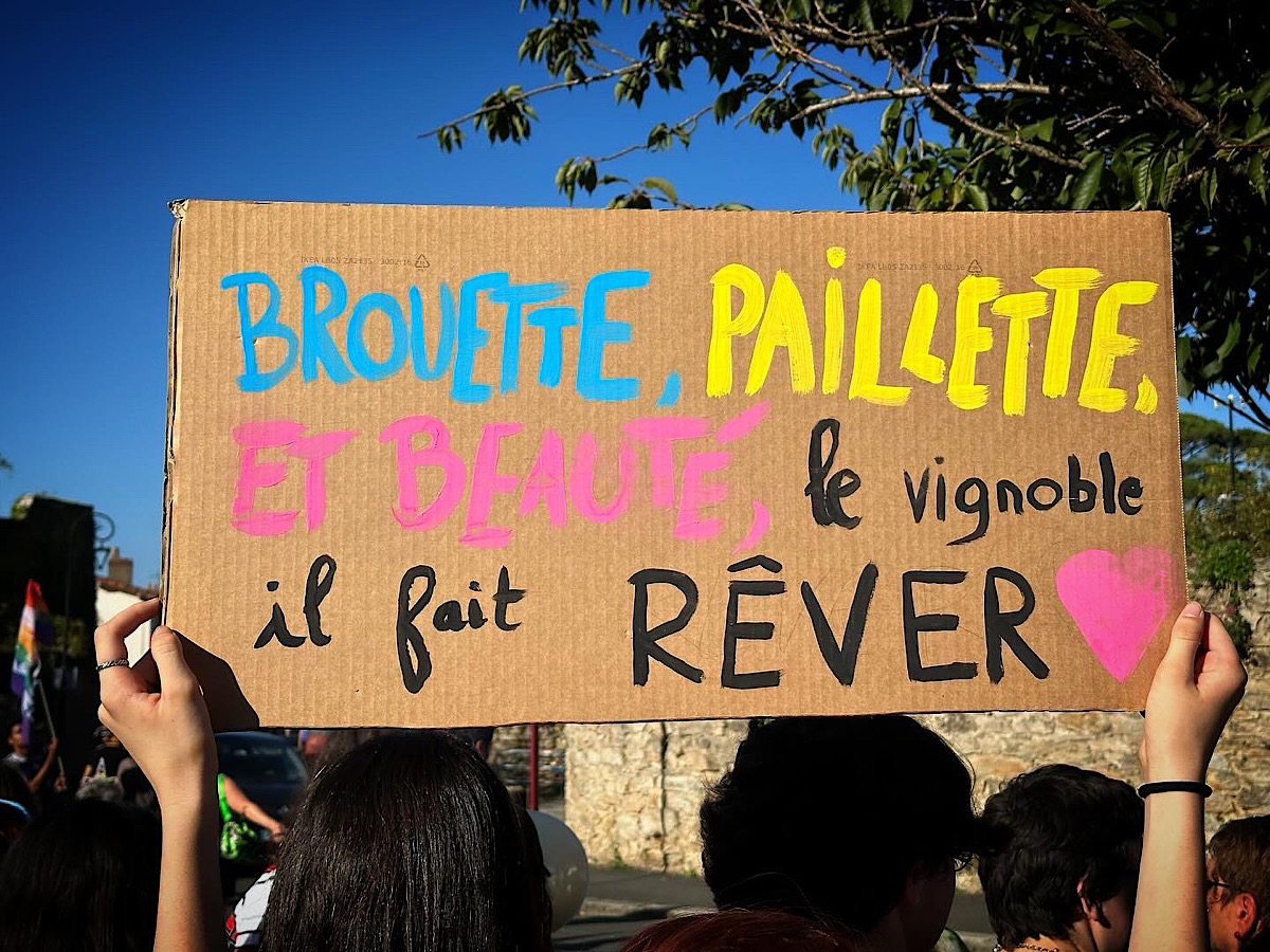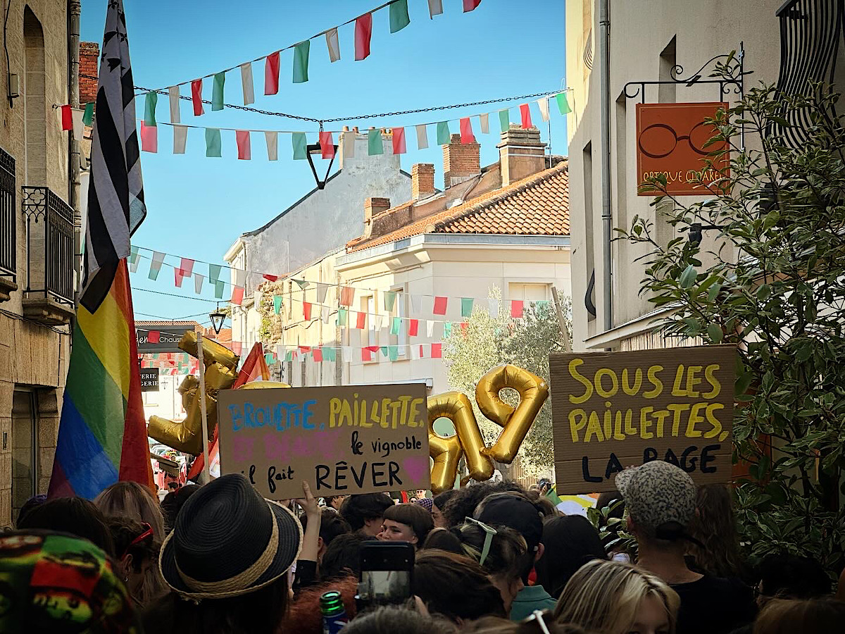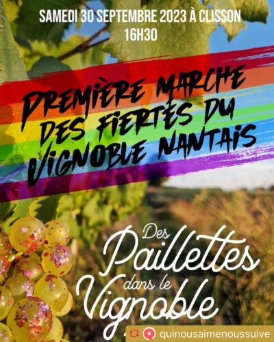 Il y a deux jours, un copain nous envoie cette info : une toute nouvelle initiative d’une Marche des Fiertés dans la région nantaise, mais dédiée au « Vignoble Nantais » et ses patelins. C’était à Clisson qui est une jolie ville du 44 avec un chouette patrimoine historique, mais qui est surtout connue pour abriter le Hell Fest bien sûr. Là on part sur une autre ambiance, et j’imagine bien ce qui devait trotter dans la tête de certaines personnes vues aujourd’hui sur le parcours (Mouahahahaha !).