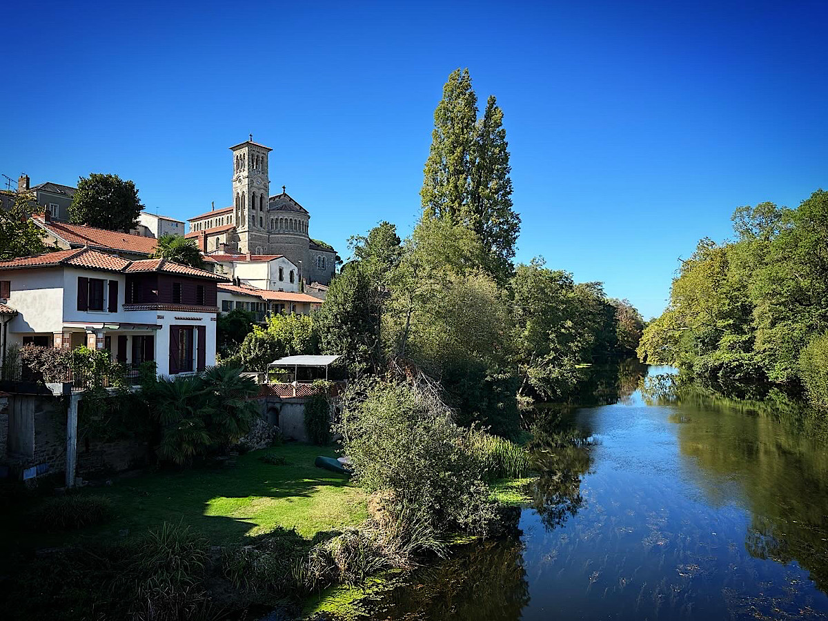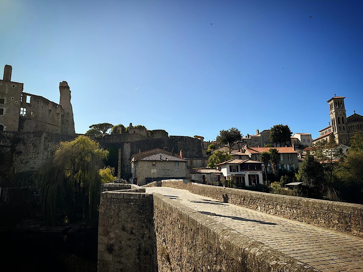 On est arrivé assez en avance, et on a fait le petit tour classique de la ville qui est vraiment toute mignonne. On est dans une ambiance assez curieuse à Clisson, et elle est connue pour cela, c’est qu’on pourrait presque se croire en Toscane, et alors pas du tout en Bretagne (la ville faisait partie du Duché de Bretagne). La Sèvres Nantaise passe dans le centre-ville avec un pont en pierres absolument pittoresque qui permet de la traverser. Et entre la vue des maisons au bord de la rivière, la forteresse en hauteur absolument gigantesque (même si ruinée) et l’église Notre Dame de Clisson (trèèèèès italienne dans l’architecture), on est dans un décor vraiment cool.