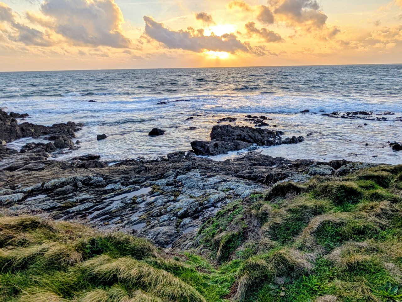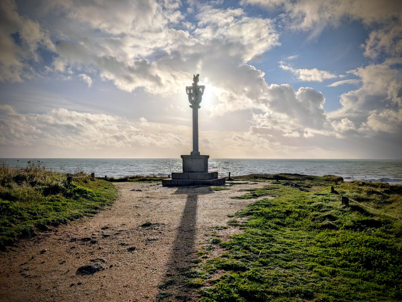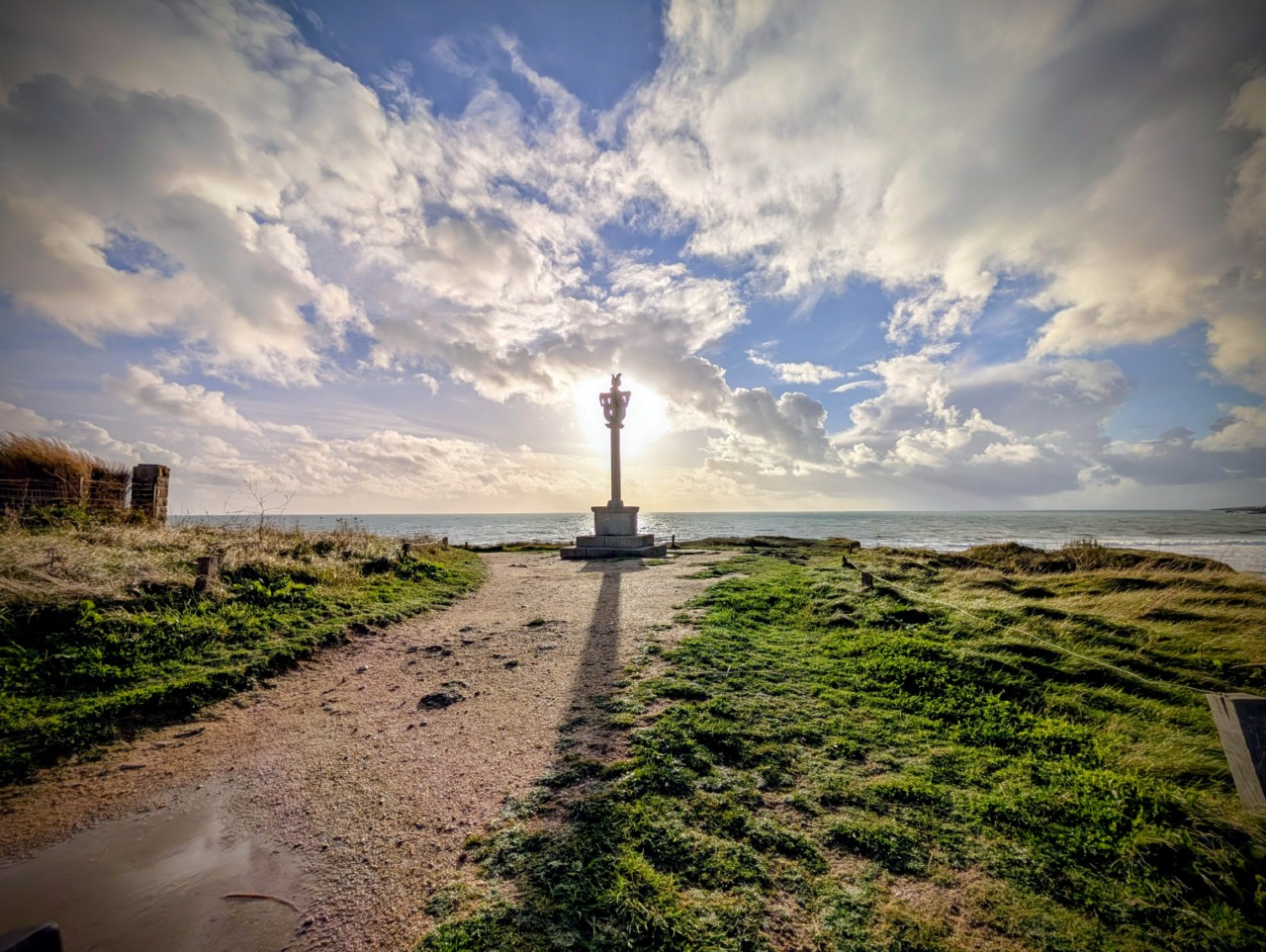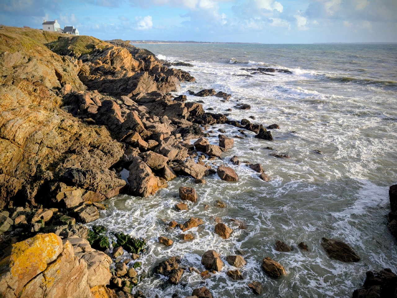 On a vu une éclaircie, on s’est dit qu’il fallait tenter notre coup, et franchement on a bien fait, car c’était super agréable de marcher par ce temps incertain. Et quand il flotte comme ça, les éclaircies fournissent en général une lumière magnifique comme là au Pouldu avec le soleil qui éclaire la côte.