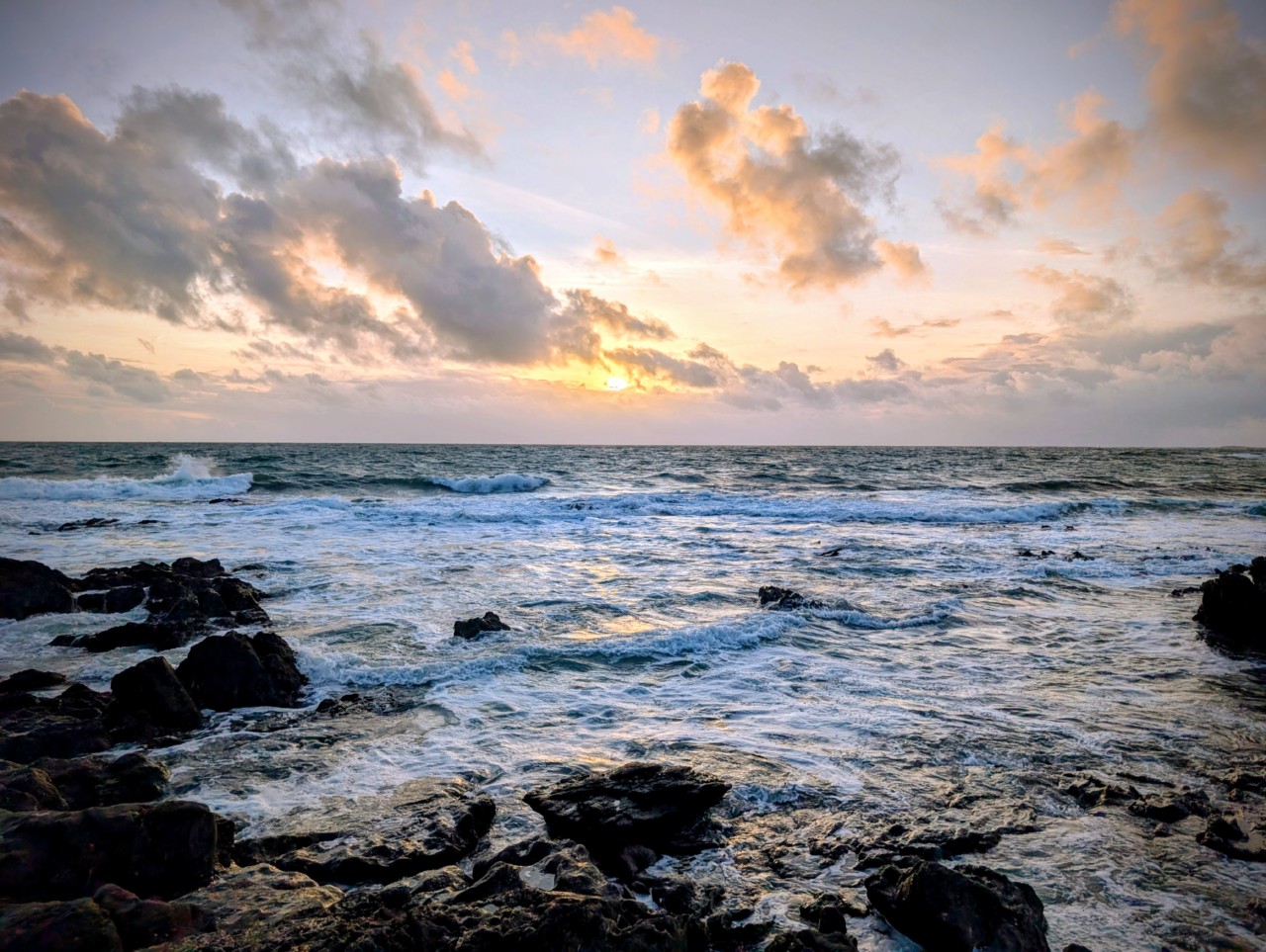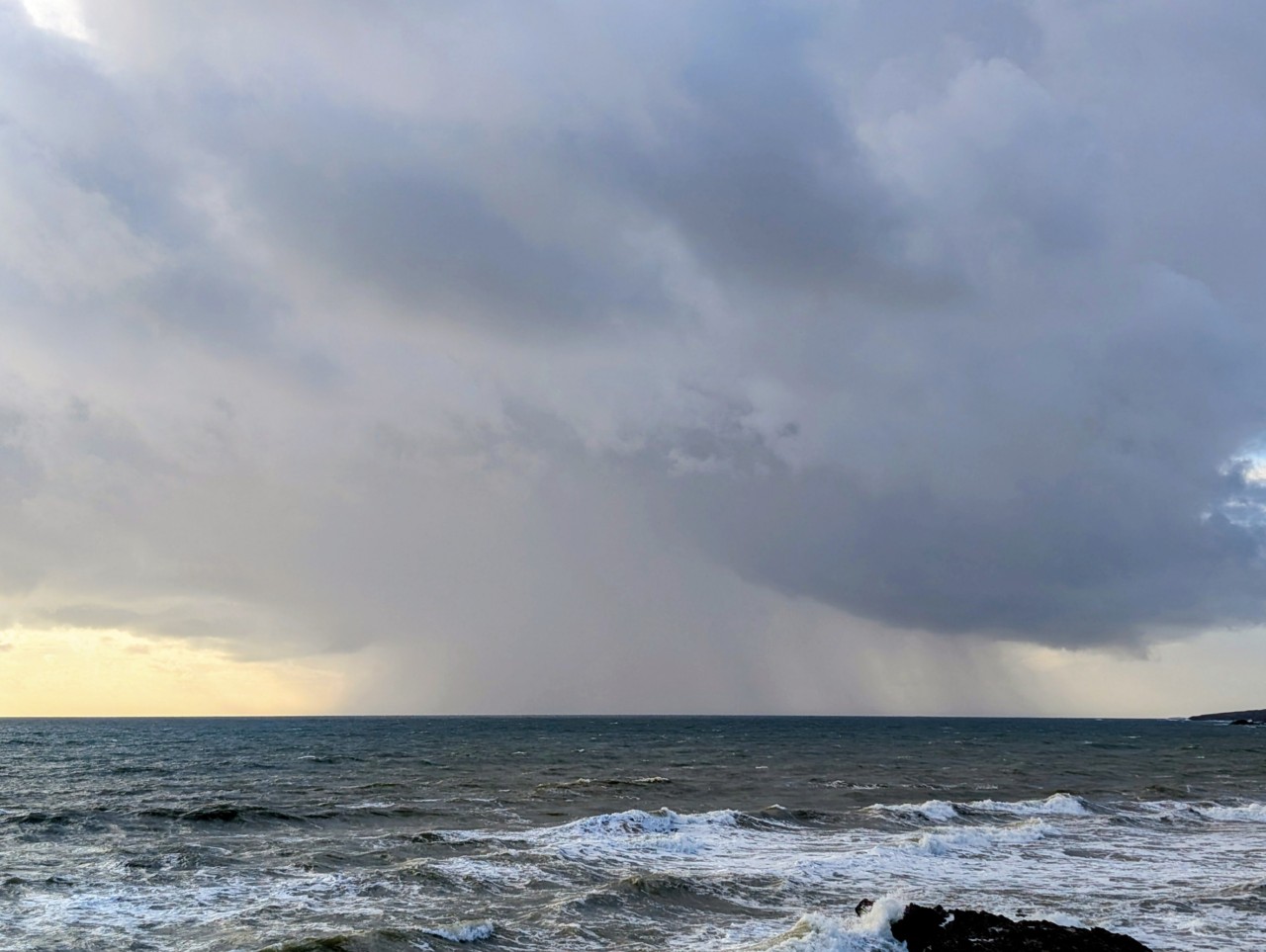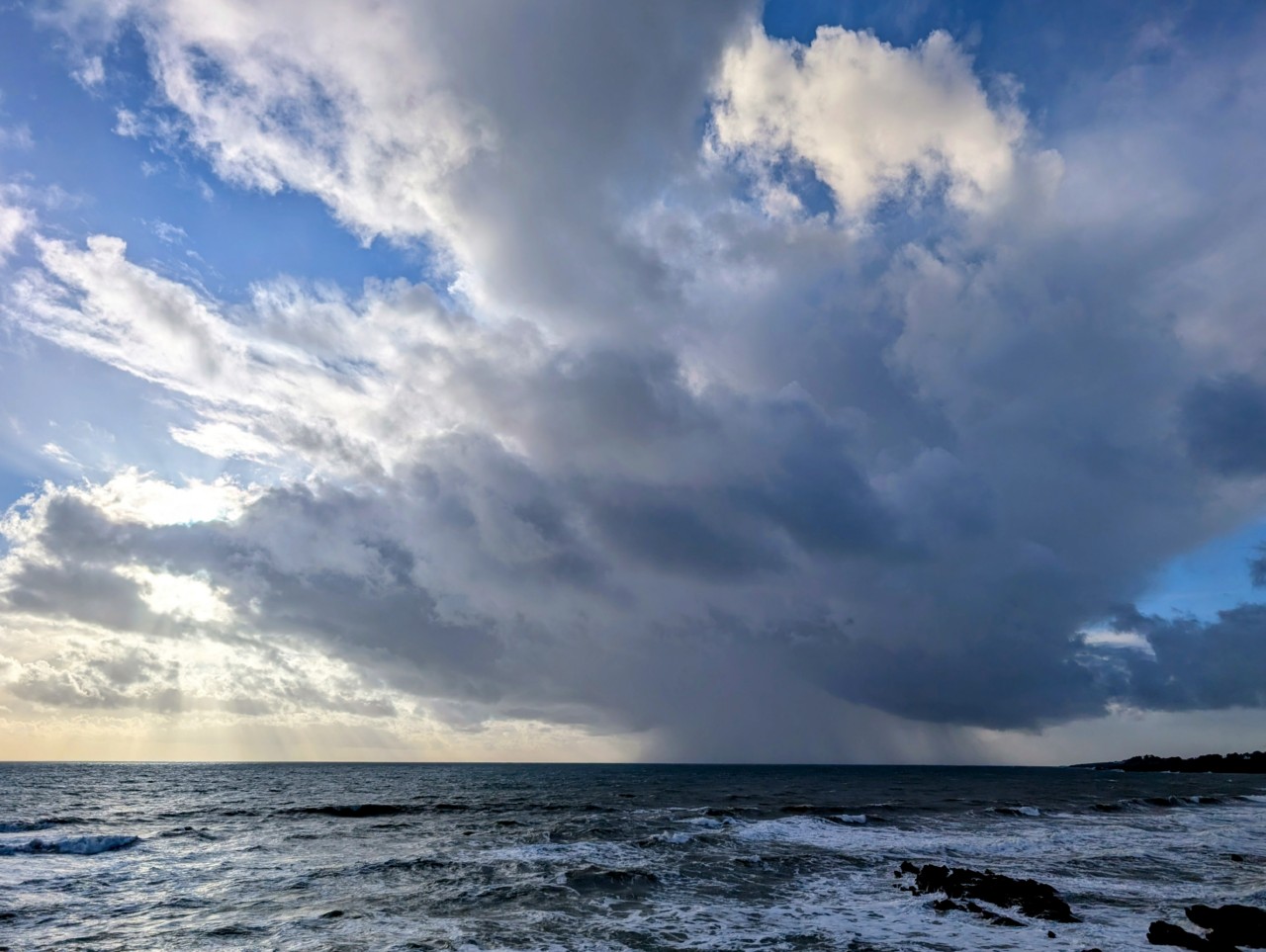 On n’a pas arrêter de passer entre les gouttes, mais quand on a vu sur l’horizon ce magnifique nuage gris qui pleuvait déjà généreusement sur l’océan, on s’est dit qu’on en n’avait plus pour longtemps.