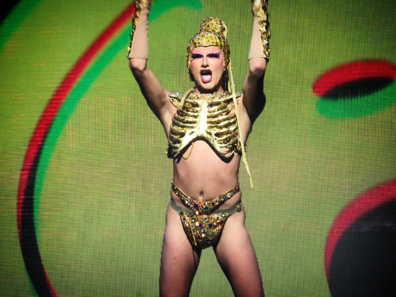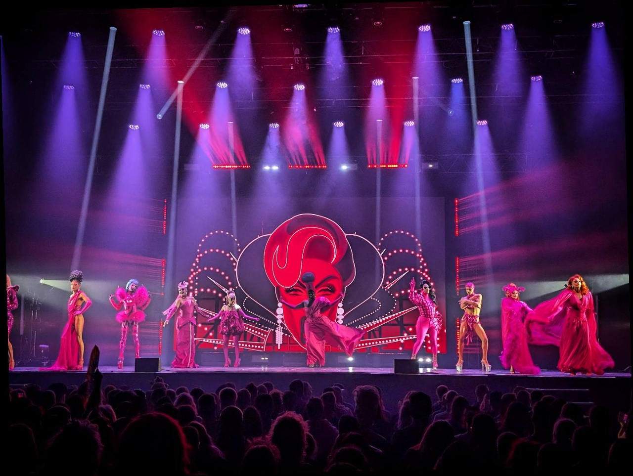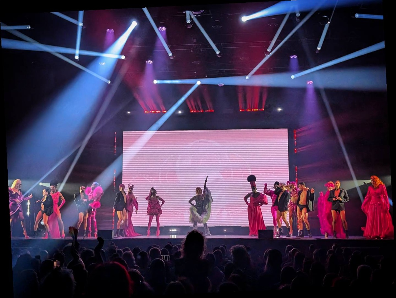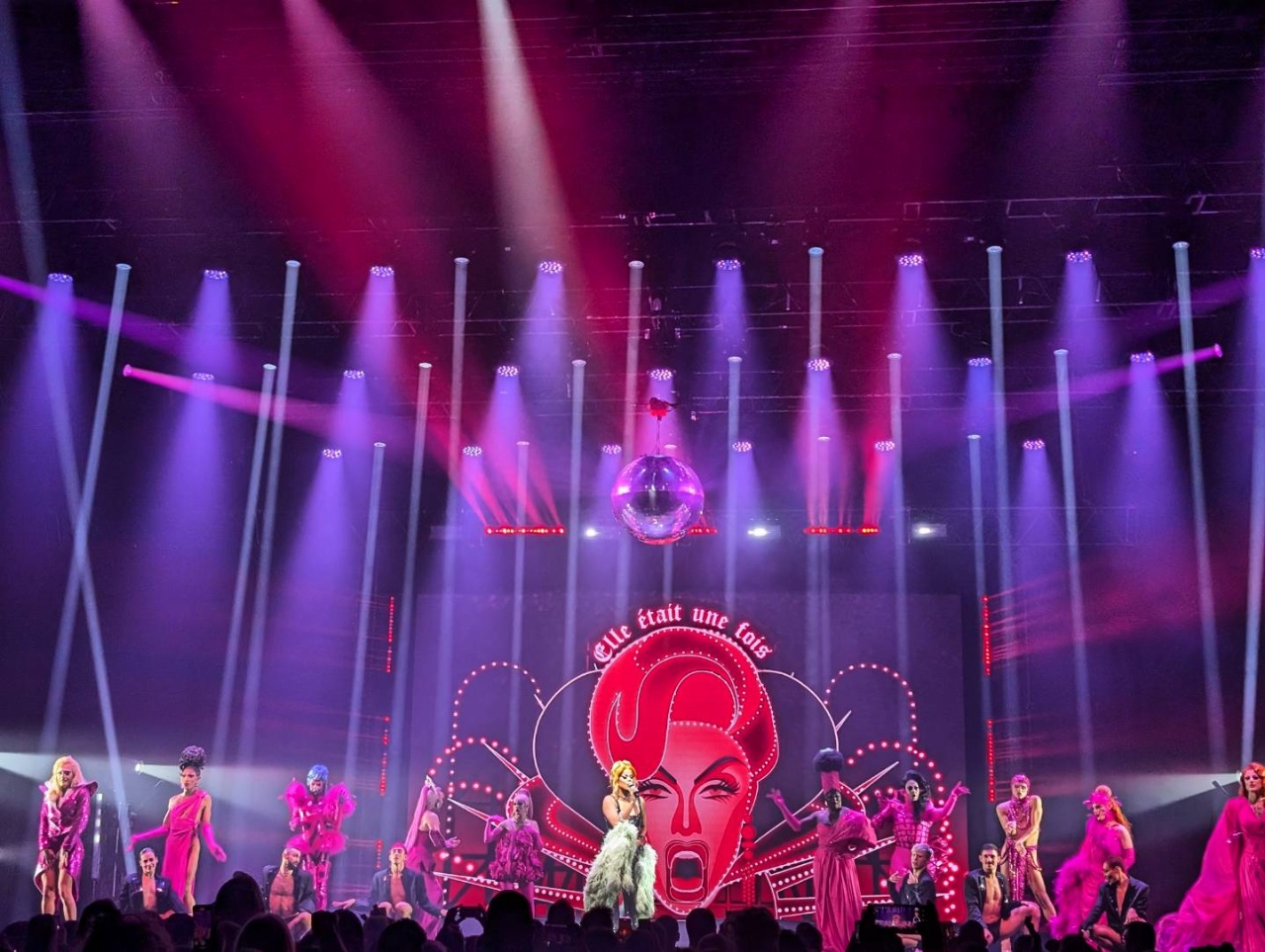 Donc là c’est épatant à constater mais c’est encore un « glow up », et donc on s’en prend plein les mirettes pour les costumes, maquillages, danseurs, habillages vidéo etc. Mais si j’avais un petit bémol, ce serait que le prix des places s’est également envolé, et je ne pense pas qu’un drag show aussi bien troussé soit-il valent une centaine d’euros. En tout cas, là en l’occurrence, même si c’était très bien, je trouve que c’est un peu trop cher, et que ça en limite tout autant l’audience bien sûr. Malgré tout la salle était archi pleine et nous étions donc 5300 personnes !