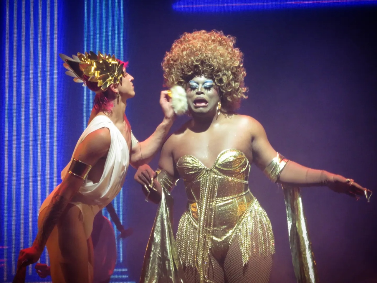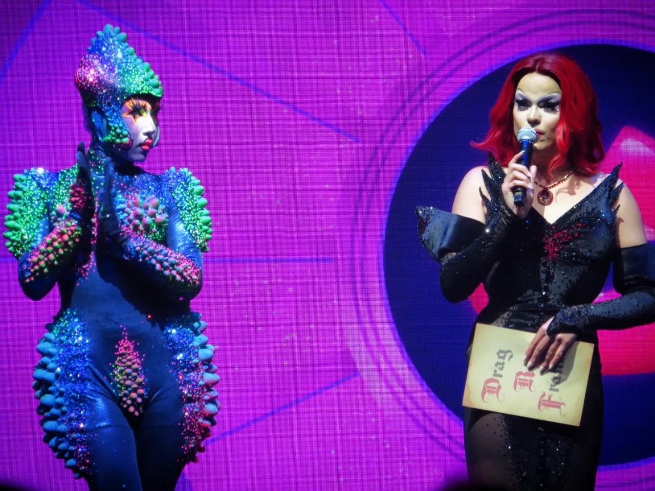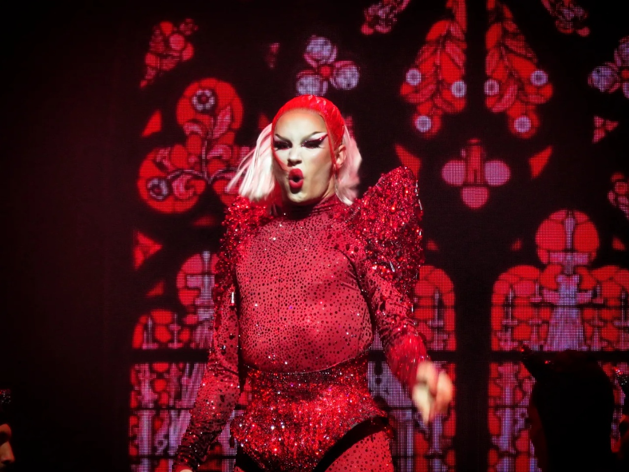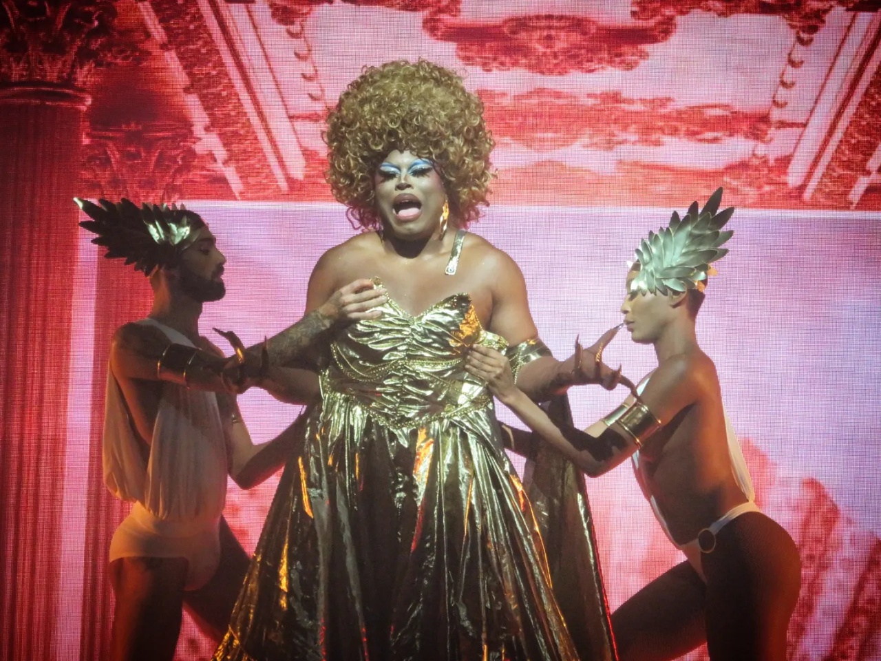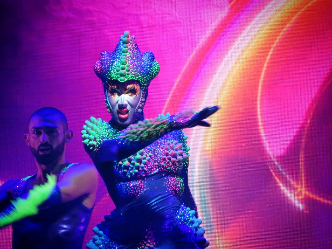 Donc là c’est épatant à constater mais c’est encore un « glow up », et donc on s’en prend plein les mirettes pour les costumes, maquillages, danseurs, habillages vidéo etc. Mais si j’avais un petit bémol, ce serait que le prix des places s’est également envolé, et je ne pense pas qu’un drag show aussi bien troussé soit-il valent une centaine d’euros. En tout cas, là en l’occurrence, même si c’était très bien, je trouve que c’est un peu trop cher, et que ça en limite tout autant l’audience bien sûr. Malgré tout la salle était archi pleine et nous étions donc 5300 personnes !