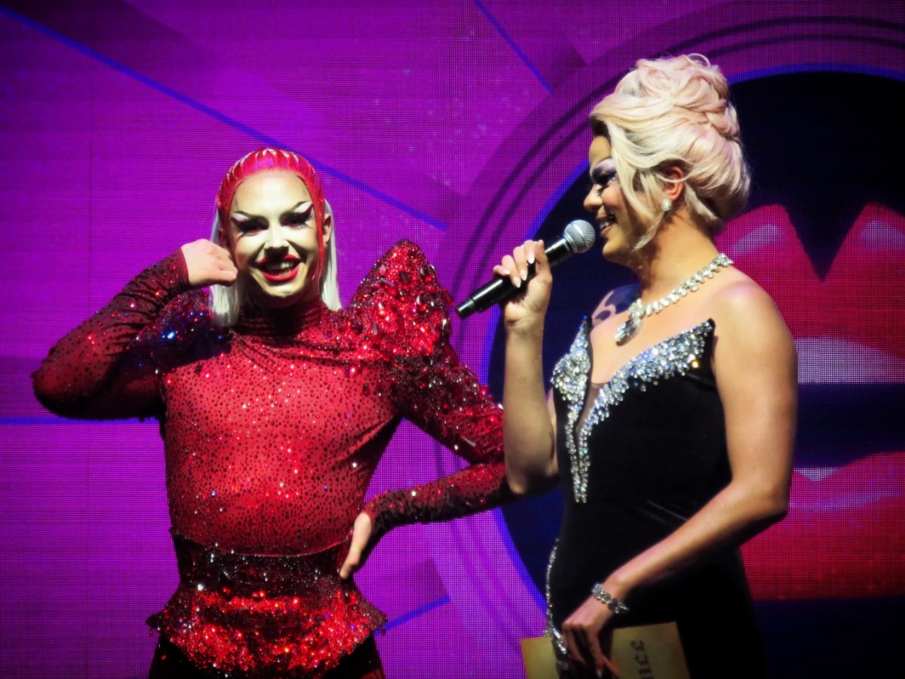 Mais sinon là où les points continuent d’être marqués c’est dans l’animation de Nicky Doll, et l’état d’esprit général de la soirée. Et cela vaut autant pour le spectacle que pour le public. Et le public nantais, qui était largement aussi au vu des plaques d’immatriculations, angevin, rennais, brestois, tourangeau et même rochelais, est aussi vraiment beaucoup pour la réussite d’hier soir. L’ambiance était absolument géniale et haute en couleur, avec des tas de gens maquillés, draguifiés, lookés, et tout le monde qui se lève, et danse et crie et fait la fête avec des rires, des sourires, des gestes d’affection et une atmosphère globale très apaisante, bienveillante et festive.