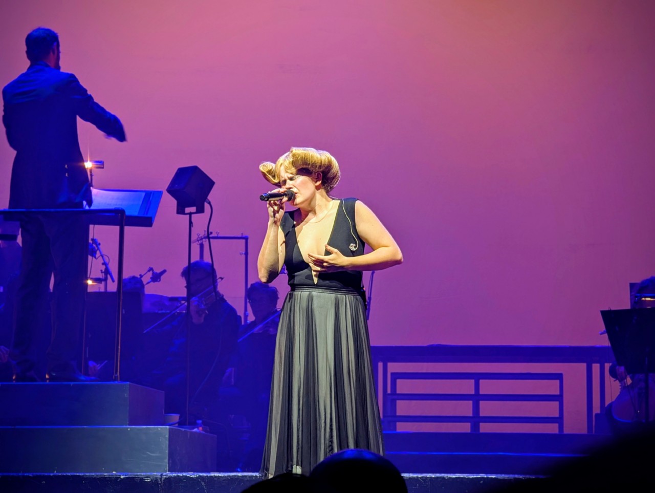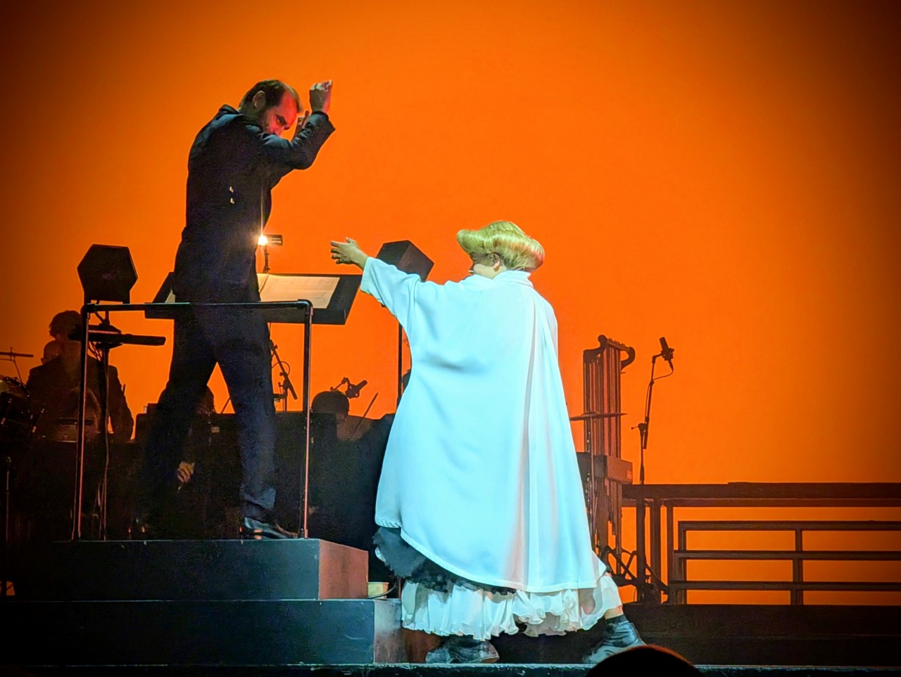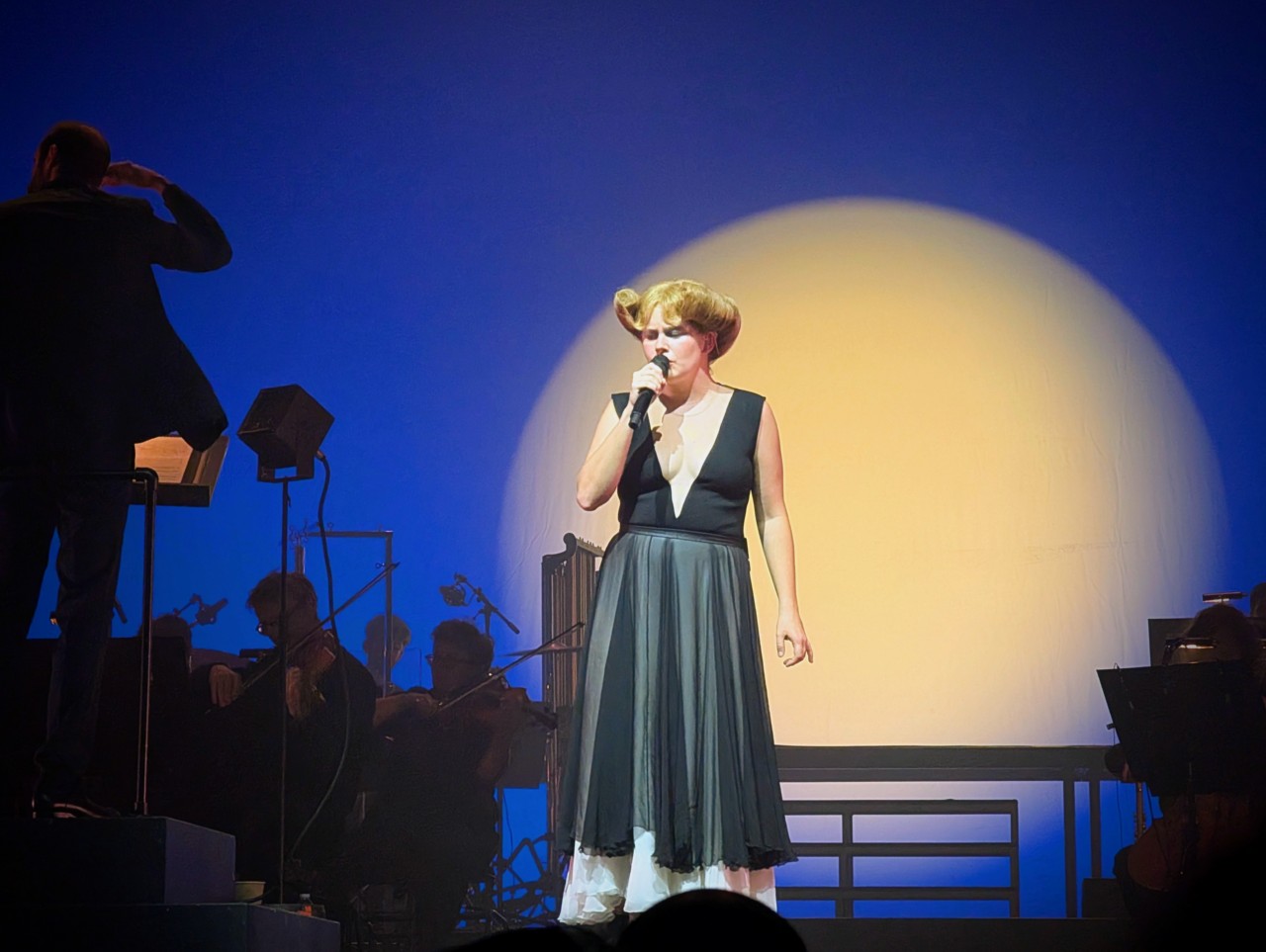 C’est vraiment mon seul petit reproche. Je trouve que ça fait un truc un peu froid, alors que des petites touches un peu plus personnelles n’auraient pas entamé l’effet global, tout en faisant baisser d’un cran la pression et le corsetage d’un tel orchestre symphonique professionnel. Pourtant à la fin, elle sort enfin de son silence, et elle explique plein de trucs, y compris un petit message « Bataclan », mais c’est « après ». Et je crois que j’aurais trouvé plus habile de faire ça « avant » quitte à passer ensuite à un spectacle entier et sans babil au public.